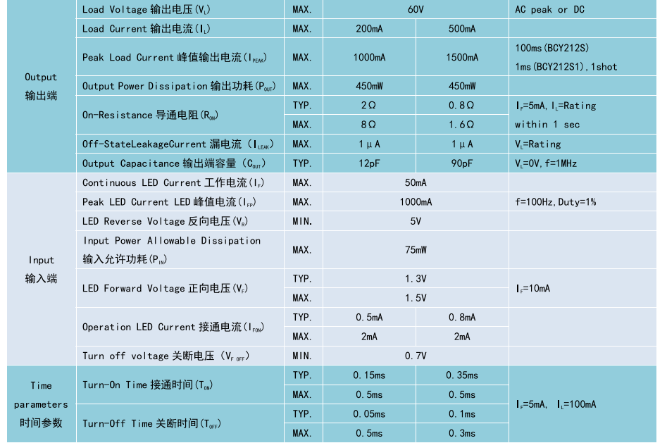 光MOS继电器BCY212E/BCY212/BCY215G1