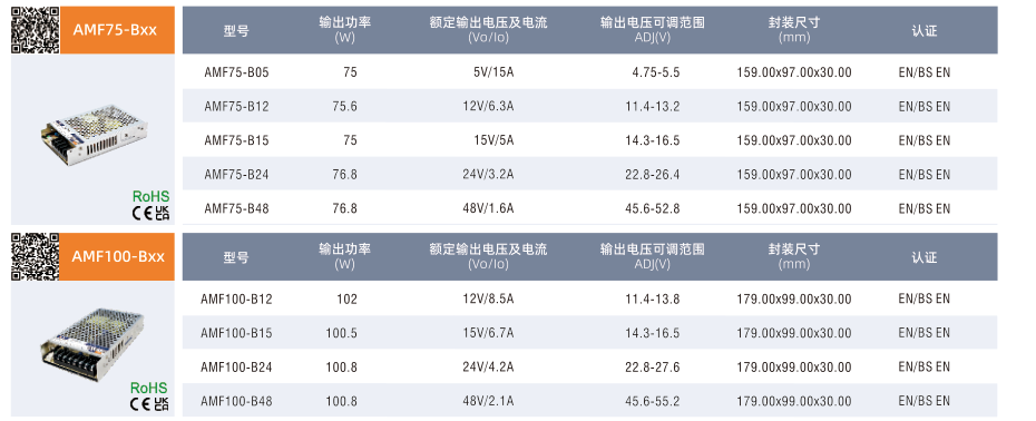 AMF75/100/150/200-Bxx, ·输入电压范围:85-305VAC/120-430VDC ·交直流两用(同一端子输入电压) ·工作温度范围:-30°Cto +70℃ ·主动式 PFC ·4000VAC高隔离电压 ·高效率,高可靠性 ·输出短路、过流、过压、过温保护(过流恒流限制) ·EMI满足 CISPR32/EN55032 CLASS B