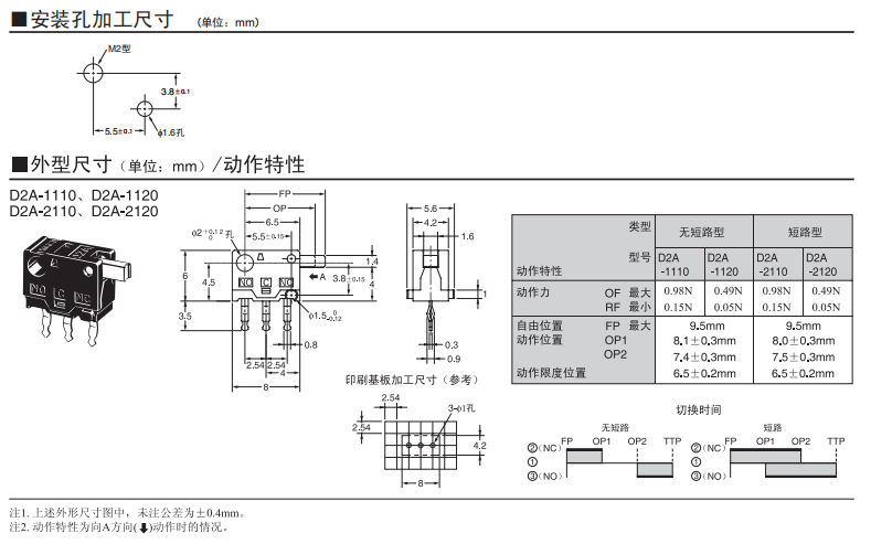 采用按钮动作式的欧姆龙超小型开关 欧姆龙超小型(高6×宽8×深4.2mm)、轻量(约0.3g)、3mm的长行程。 由于是滑动方式,所以短路、非短路的切换时间可根据使用用途进行选择。